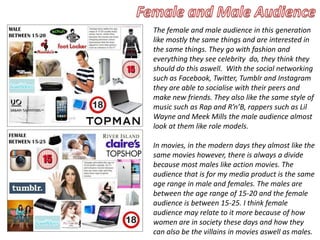 The document discusses the opening scene of a media project called "Retribution". It analyzes how the opening appeals to and engages the target audience of 15-25 year olds. Specifically, it notes that the characters are similar in age to the audience and deal with themes of revenge that may resonate. It also discusses the filmmaking techniques used, such as shot types, music, and stereotypes portrayed that help attract and relate to the target viewers.