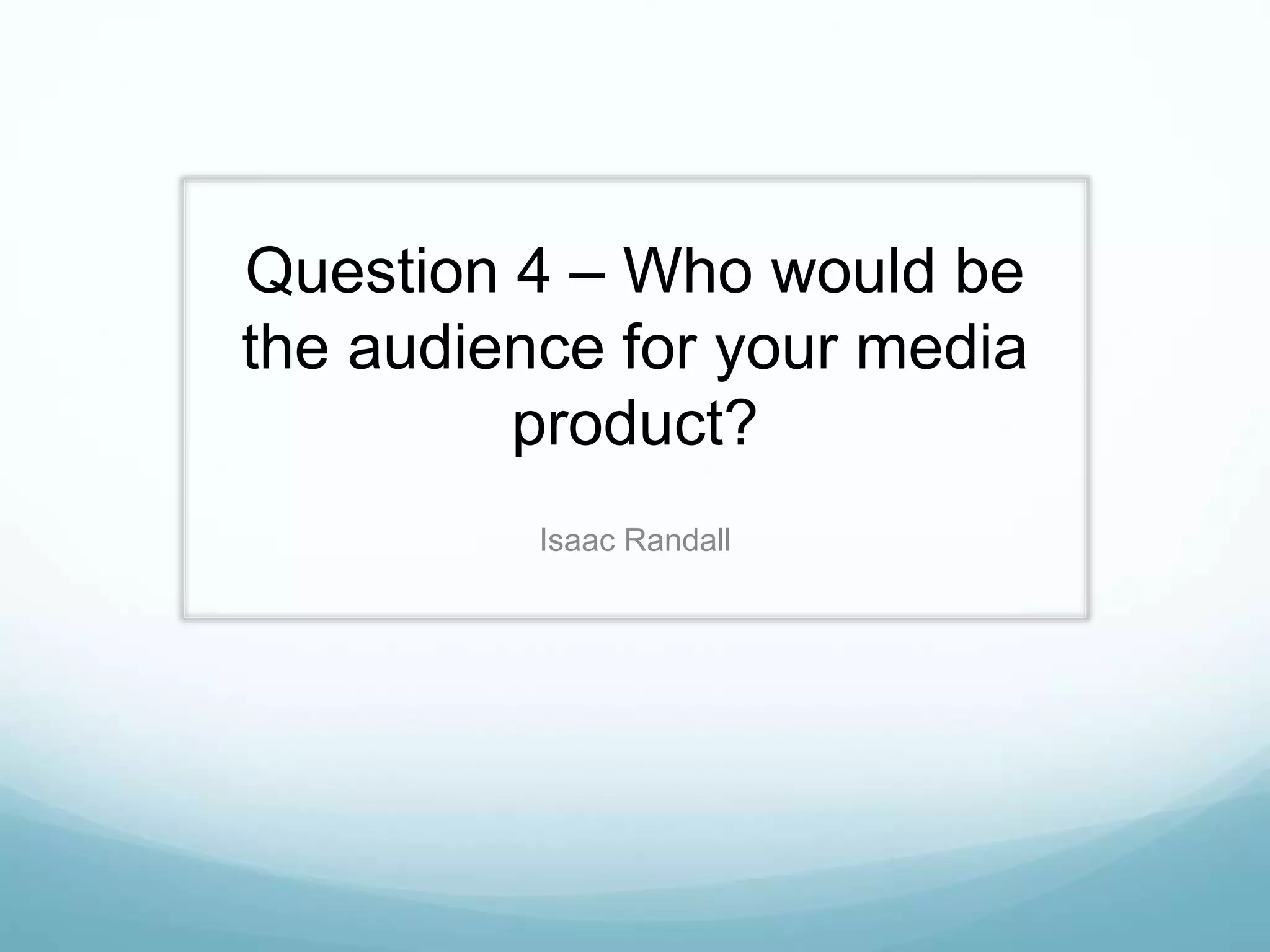The document discusses the target audience for a horror film media product. It analyzes research showing that the main audience for horror films is 15-25 year olds, with most viewers being teenagers and young adults. While horror films are sometimes seen as targeting males specifically, research shows films in the genre often have large female audiences as well in the younger age groups. The document then discusses how the creator's horror film media product aims its target audience at 15-25 year olds, with a focus on teenagers, as it includes graphic imagery and relatable themes. It indicates the product targets males slightly more but still aims to appeal to existing female horror fans. The product also aims to appeal to those interested in topics like the supernatural,