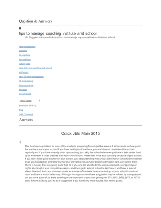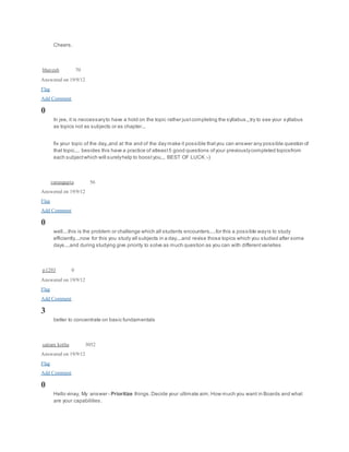 1) Prioritize your goals and decide how much focus you want to give to boards versus competitive exams like JEE.