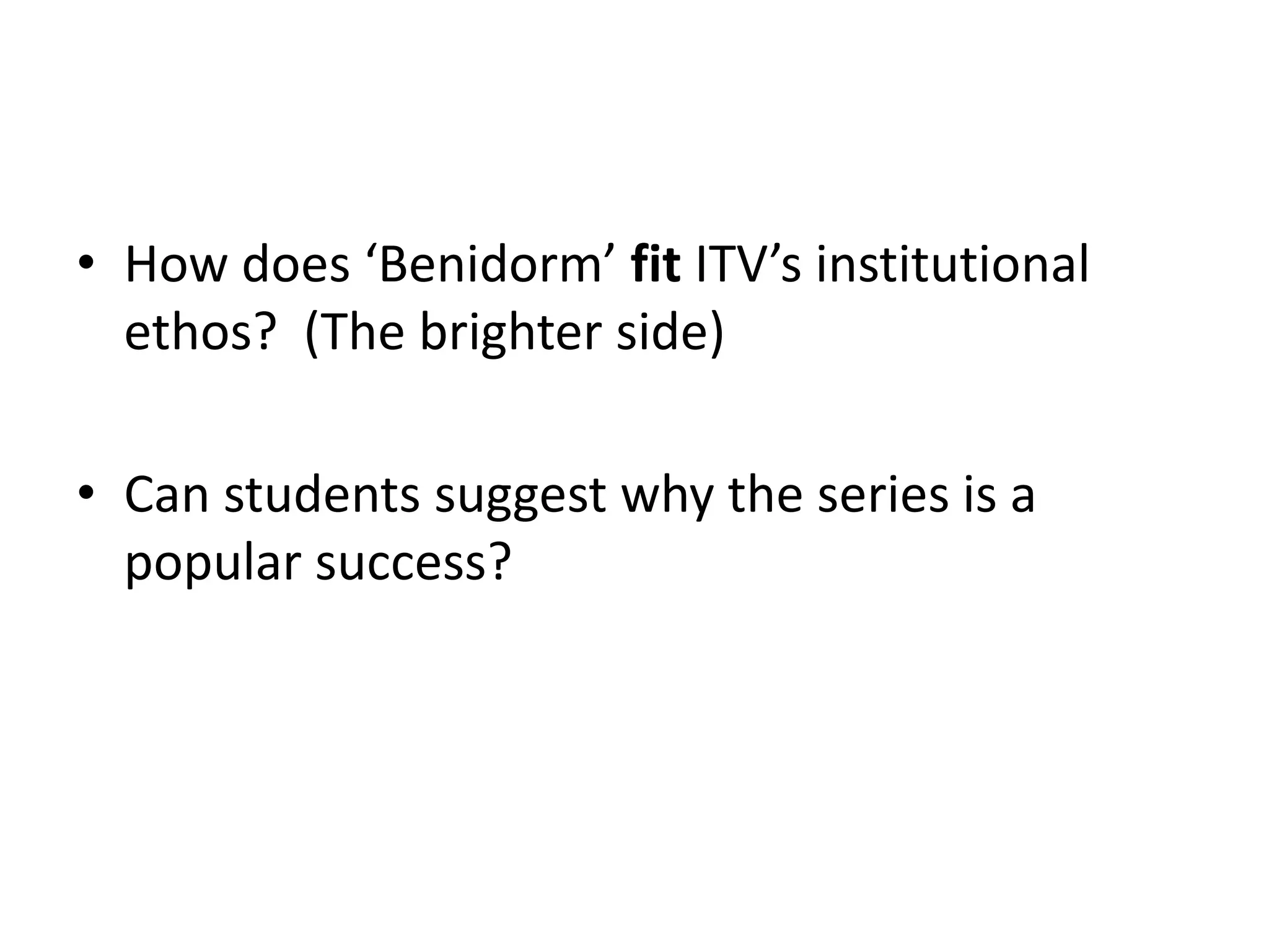 - It prompts analysis of why a particular comedy show is broadcast at a certain time/day on different channels, comparing a public service channel like BBC3 to a commercial channel like ITV1.