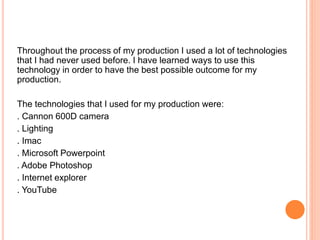Throughout producing a magazine, the student learned to use several new technologies: