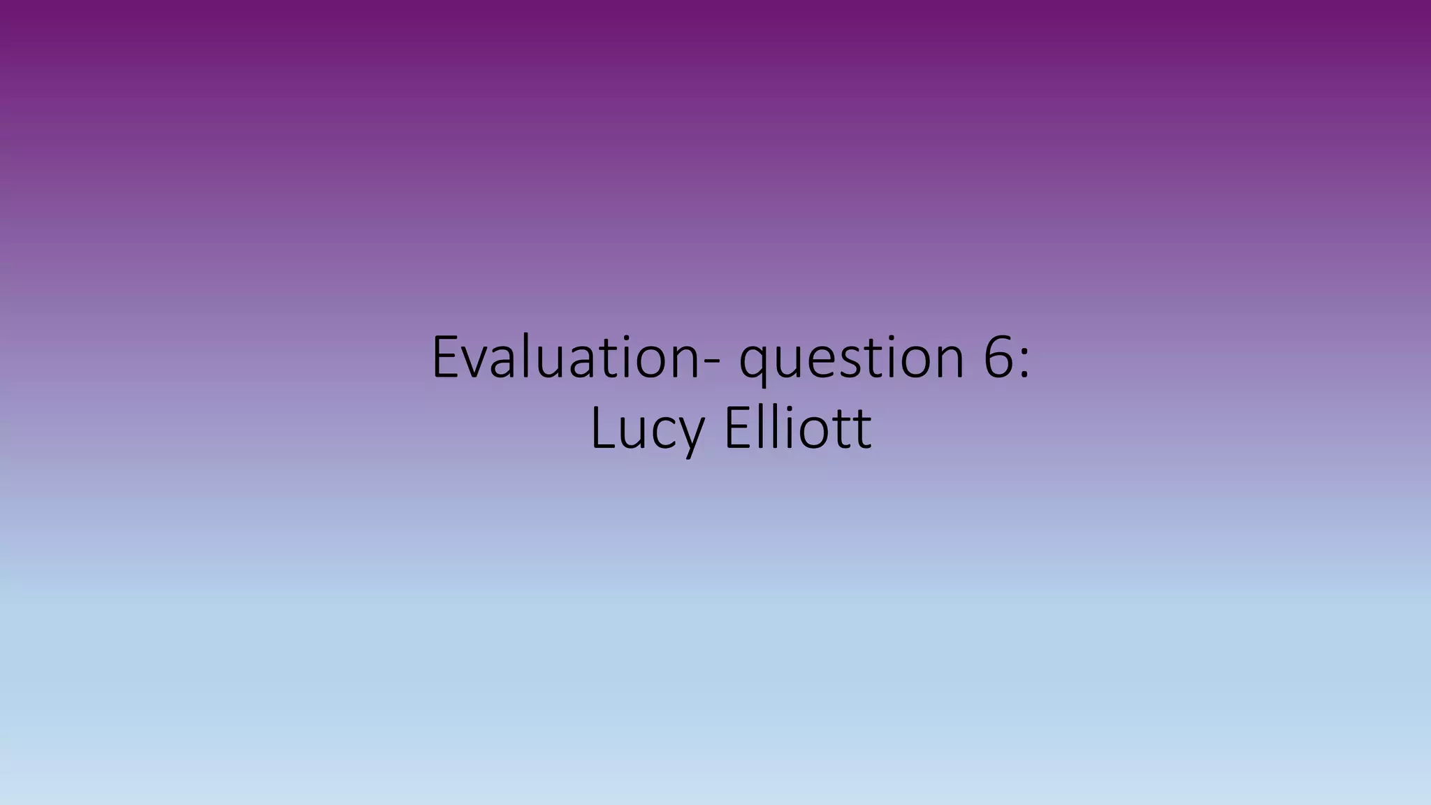 Lucy Elliott evaluated various software and tools used in creating a video opening sequence for a class project. Final Cut Express allowed for easy editing and customization but had a difficult learning curve. YouTube provided tutorial videos for Final Cut Express and ideas for the opening sequence, but copyright prevented using its media. Garage Band enabled custom music creation but was challenging to learn. Blogger offered a neat, organized way to compile the project work online. The camera captured clear, steady shots but sometimes had interface issues that required retakes.