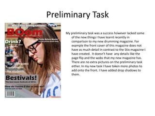 Through completing a preliminary task and final product, the student learned several important lessons. For the final product, the student added more photos, drop shadows, page flips, opaque wobs and lines to provide more detail. Improved planning and preparation allowed better use of time and resources. Photography, digital manipulation, and layout skills improved from applying techniques learned in the preliminary task and through practice.