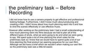 3) Digital tools like using a camcorder to record professionally and Adobe Premier to edit short shots together. These skills aided planning and filming the full opening sequence.