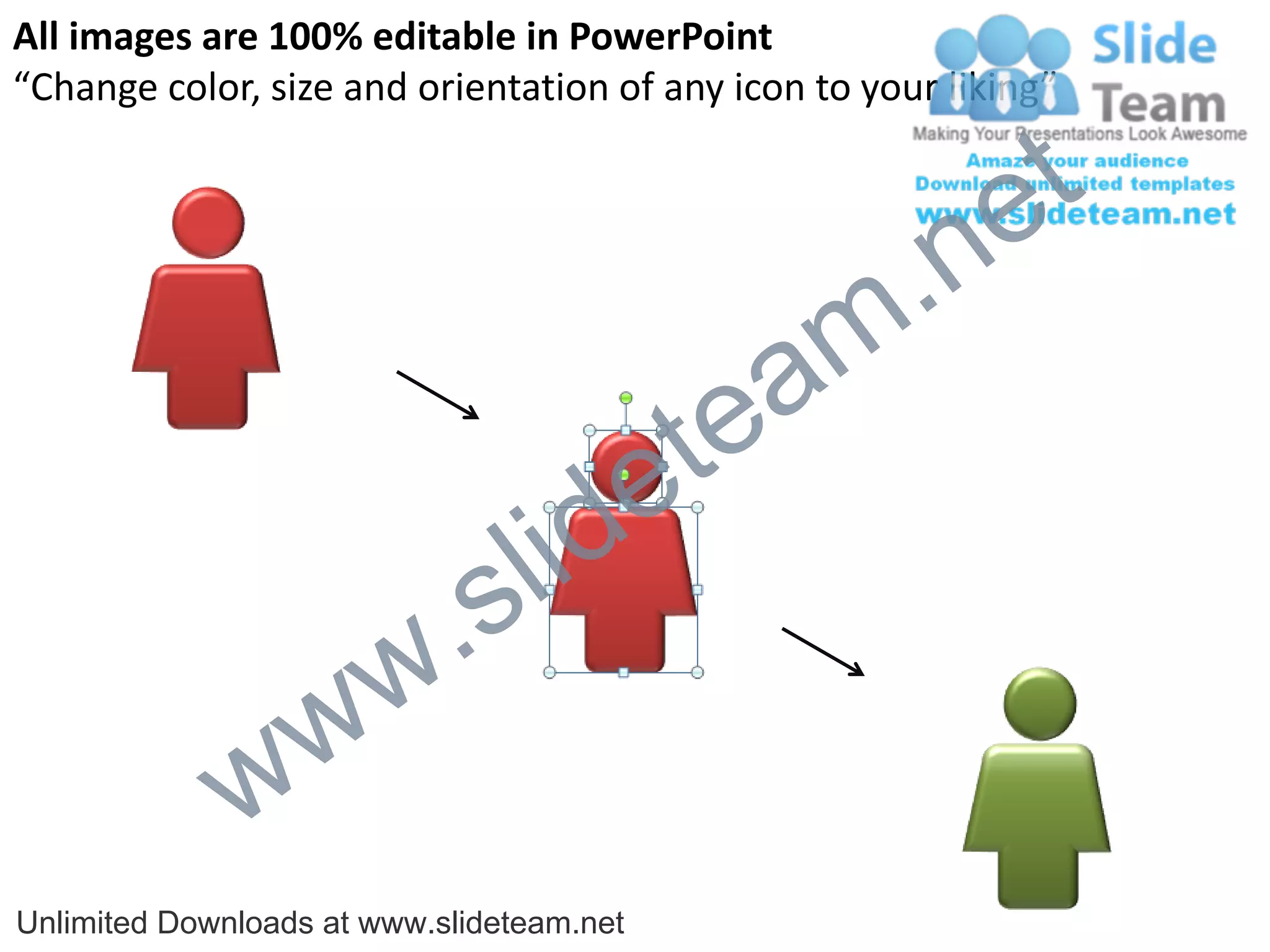 This document provides instructions for customizing slide objects in PowerPoint. It describes how to ungroup objects so they can be edited individually, and how to change the color of shapes by selecting the object, right clicking, choosing format shape, and selecting a new fill color or gradient. The goal is to help users bring their presentations to life by editing slide elements like icons, images, and shapes.