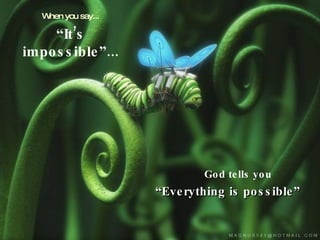 This document presents a series of statements contrasting what people say in difficult situations with reassuring responses from God. It addresses feelings of inability to solve problems or do the impossible, being alone, undeserving of forgiveness, afraid, tired, unloved, and not knowing how to continue. The document encourages reading the Quran to know more of what God wants to tell us and sharing the message to give the gift of life.
