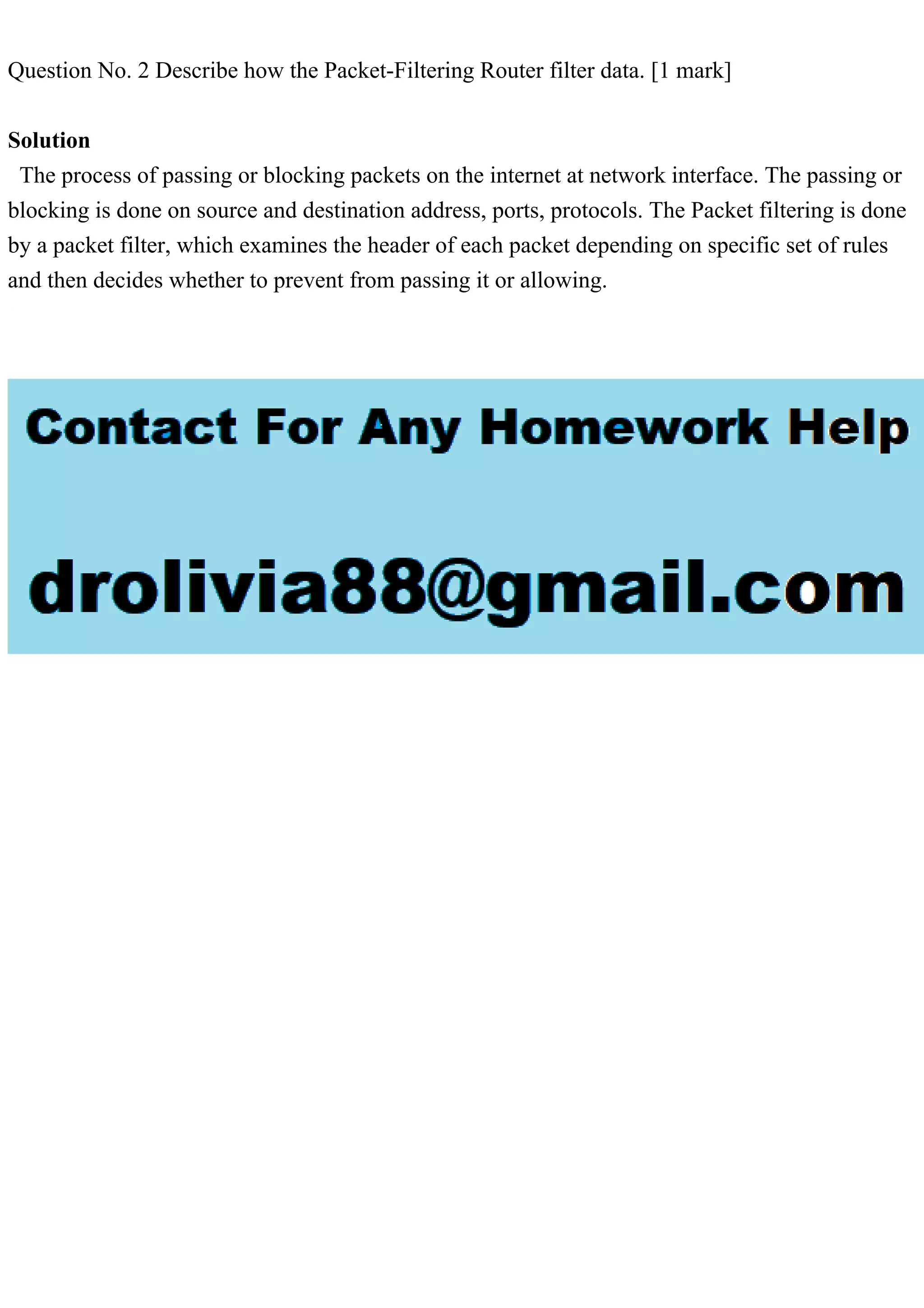 ![Question No. 2 Describe how the Packet-Filtering Router filter data. [1 mark]
