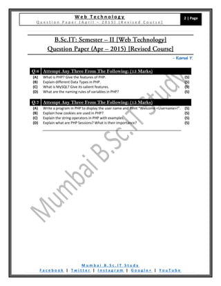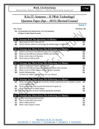 (D) What is XSL? Explain in brief. (5)](https://image.slidesharecdn.com/wt-qprevisedcourseapr-2015-170713040448/85/Question-Paper-Web-Technology-Revised-Course-April-2015-1-320.jpg)