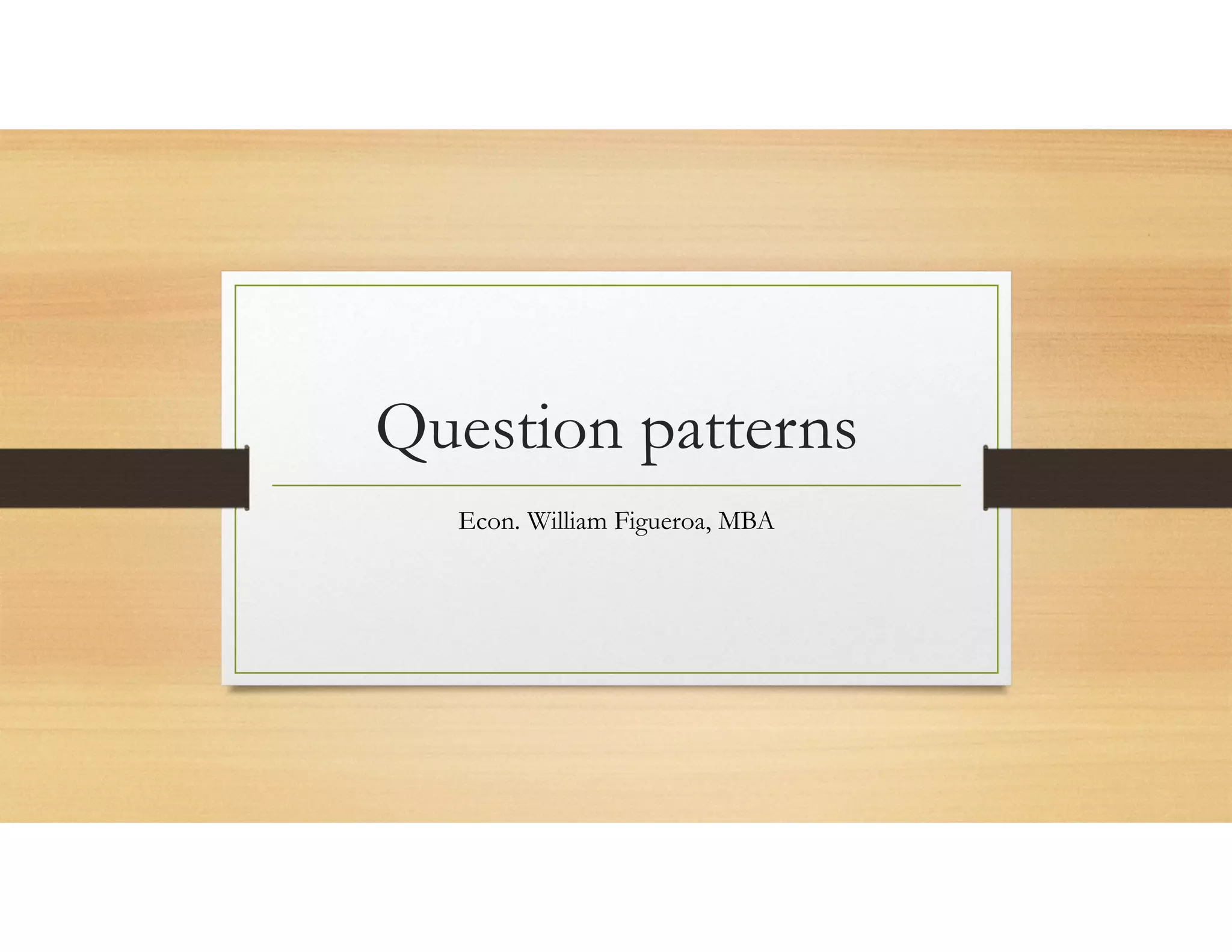 The document discusses different question patterns in English including wh- questions, negative questions, tag questions, and indirect questions.