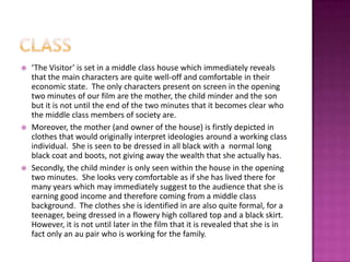 1. The middle-class family is shown to contradict class expectations, with the mother dressed in working-class clothes and the house not immediately revealing their wealth.