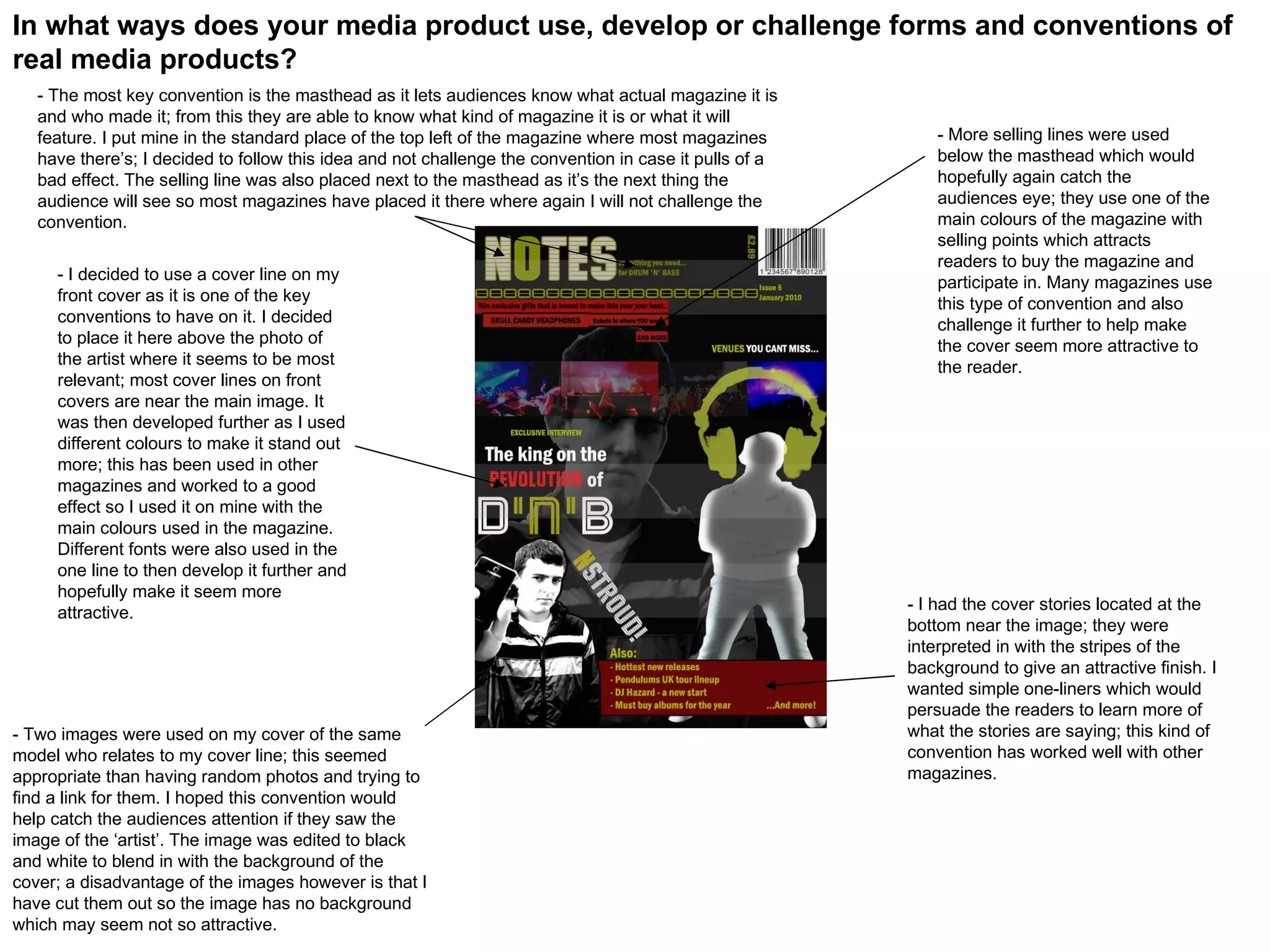 - The magazine follows conventions such as placing the masthead in the top left corner and cover lines near the main image to attract readers' attention.