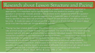 This indicator focuses on questioning as a key aspect of instruction. Effective questioning involves varying the types of questions asked, such as knowledge, comprehension, application, analysis, creation and evaluation. Questions should be purposeful, coherent and sequenced to instructional goals. The frequency of questions and wait time after questions are also important. Strategically selecting students to respond can maximize engagement and learning for all students. Planning questioning is important to enhance learning and meet objectives.