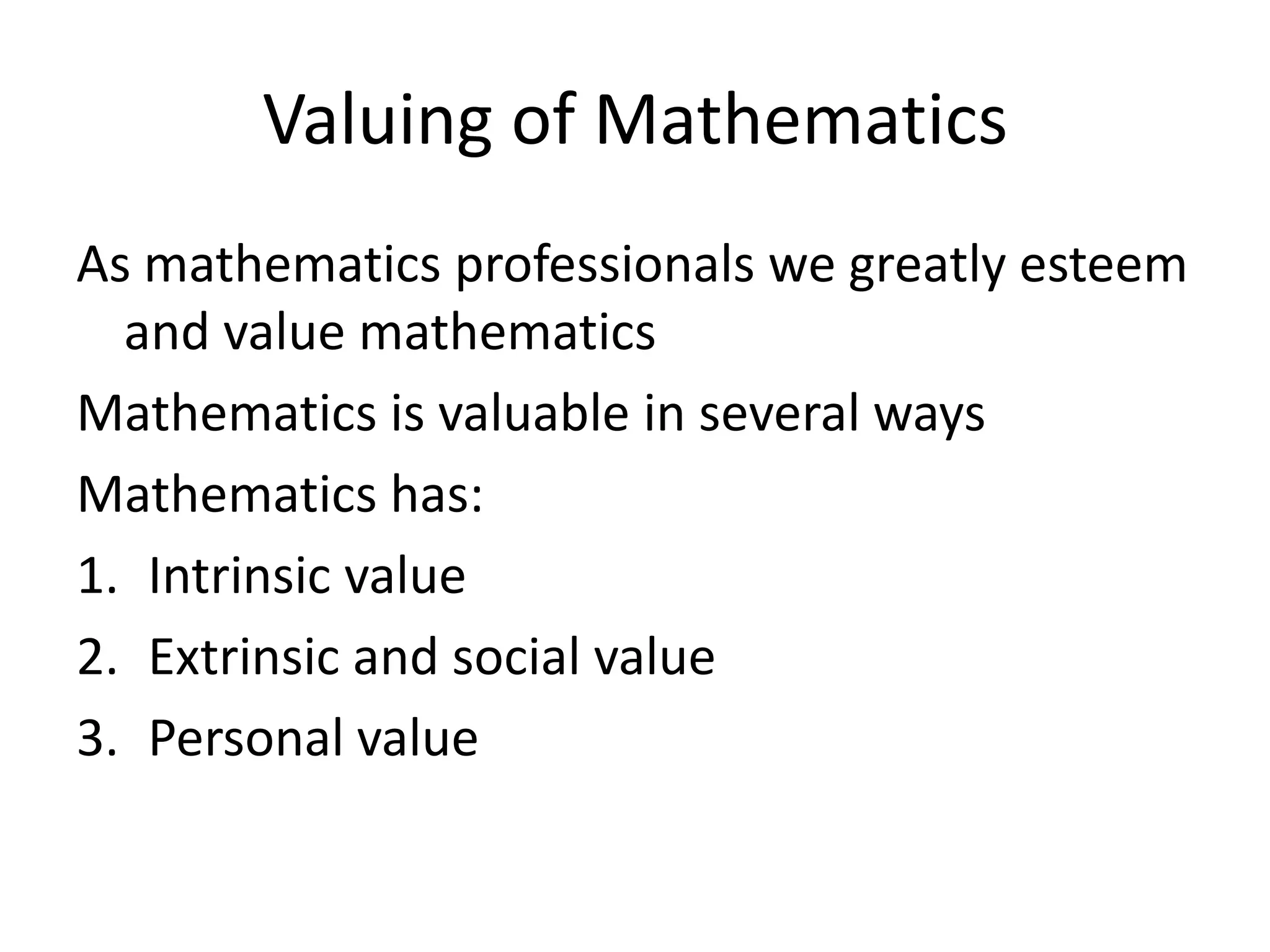The document explores the multifaceted value of mathematics, highlighting intrinsic, extrinsic, and personal dimensions while questioning its unquestioned status in society. It discusses the potential harms arising from the instrumental reasoning fostered by mathematical thinking, which can lead to ethical detachment and social inequalities. The author advocates for reform in mathematics education to incorporate ethics and a broader appreciation of its cultural relevance, suggesting a more humanized approach to teaching mathematics.