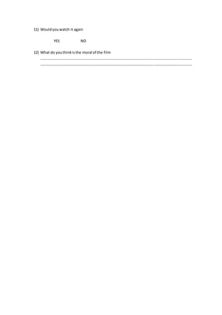 This document is a post-audience questionnaire for a short film called "Coming Home" that asks viewers about their reactions to and opinions on various aspects of the film such as whether they enjoyed it, which parts could be improved, if the narration was effective, who the target audience seemed to be, what genre it was, how they would rate it, what age rating they would give it, if they predicted the ending, if it was predictable, and what the strongest part and moral of the film were. It collects both multiple choice and open-ended feedback.