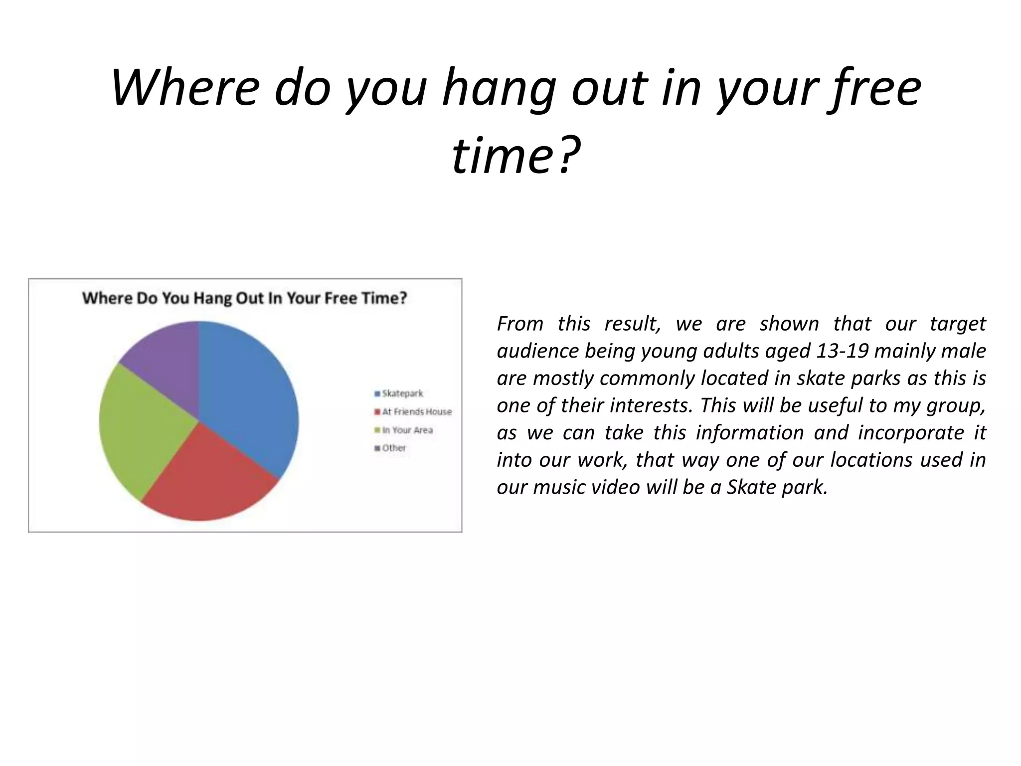The document contains the results of a questionnaire given to a target audience of young males aged 13-19. Key results include: