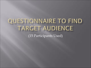 Based on a survey of 15 participants' music, artist, and genre preferences as well as demographic information and preferences for video types: - The target audience for a new video would be people aged 17-21. - They enjoy concept-based videos with a pop soundtrack. - Using 18-year-old actors in the video would appeal to this target audience.