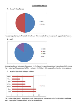 1. The target audience for the magazine is between 16-25 years old based on the questionnaire results.