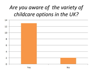 This document asks a series of questions about a person's children, including how many they have, their ages, the type of childcare used, how often documentaries are watched, what types are enjoyed, whether a documentary about childcare would be watched, and what time such a documentary would likely be shown.