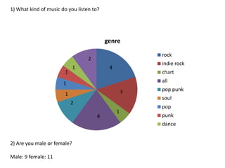 This document summarizes the results of a questionnaire about music preferences. It shows: