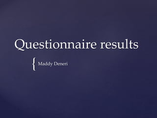 The document summarizes the results of a questionnaire about horror movies. It asked 21 people questions about preferences related to horror movie genres, conventions, and effective marketing. Key findings included that psychological horror was the most preferred subgenre, viewers enjoying common tropes like the "final girl" and jump scares, and important elements of horror movie trailers being character attachment and jump scares.