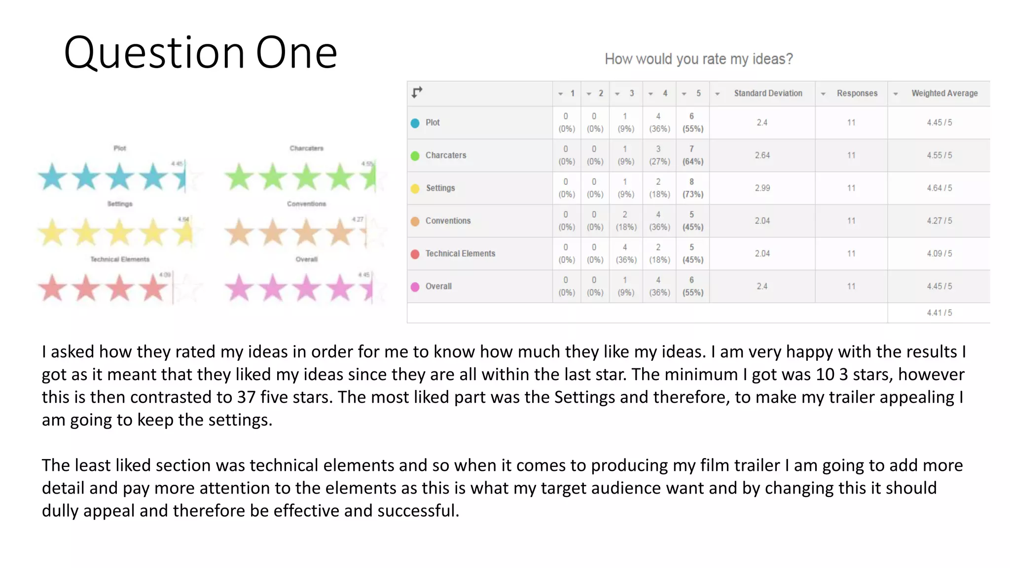 - Respondents generally liked the plot ideas and characters but felt the technical elements, especially sound, could be improved.