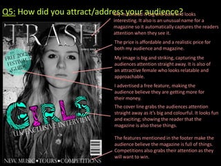 To attract their audience, the student used an unusual magazine name to grab attention, set an affordable price, and featured an attractive cover model. They also advertised free features to make the product seem like good value.