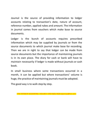 The document discusses the need for internal auditing in accounting. It states that just as anything left idle will become faulty, accounting records also need checking to catch mistakes early and present accurate accounting. An internal auditor is needed to check transactions with an overview, examining source documents and recordings. Some of the internal auditor's responsibilities mentioned are checking purchase orders, invoices, bills, cash memos, inventory and consumables. The summary conveys that the document advocates for internal auditing to ensure accurate accounting by catching errors early.