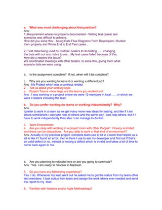 - The candidate's most recent role involved testing a court case management system where they tested functionality from case initiation to closing.