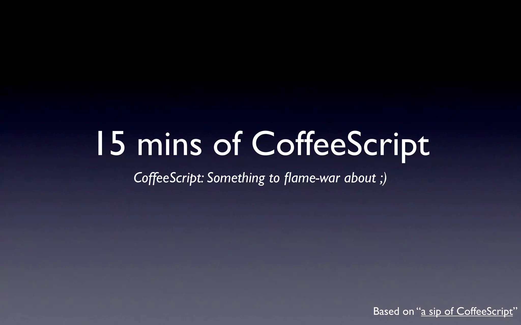 CoffeeScript is a programming language that compiles to JavaScript. It provides a more concise syntax while maintaining a 1:1 mapping to JavaScript concepts. Some key features of CoffeeScript include implicit returns from functions, optional function parameters, and chaining comparisons. While it adds another layer to learn, CoffeeScript allows for writing cleaner code that compiles down to equivalent JavaScript.