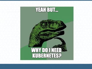 3) The document provides an overview of key Kubernetes concepts including pods, replication controllers, and services. Pods are the smallest deployable units that can contain one or more containers which share resources. Replication controllers ensure a specified number of pod replicas are running. Services define a policy to access pods through labels.