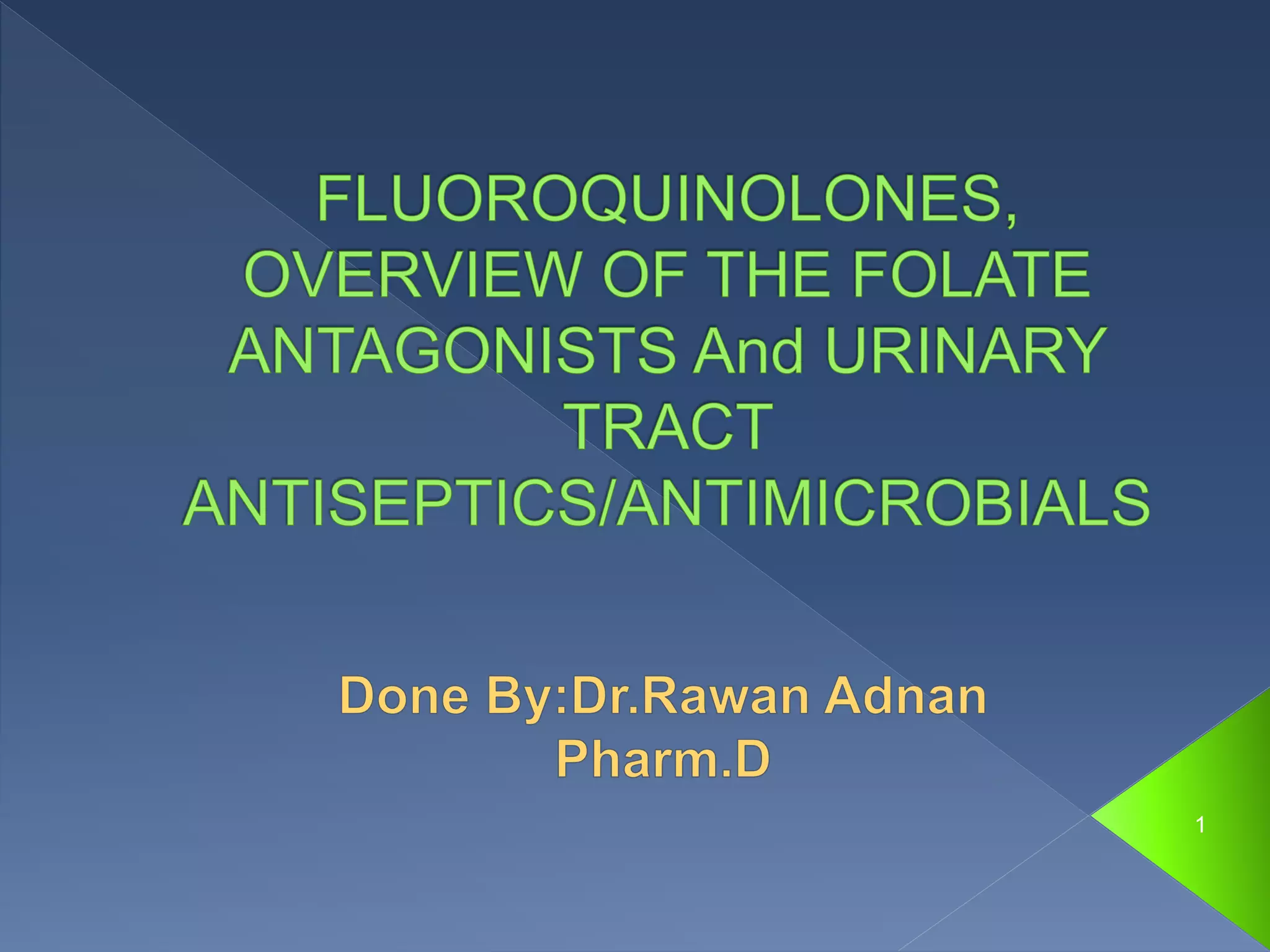 The document discusses fluoroquinolone antibiotics including their mechanism of action, categories, spectrum of activity, and adverse effects. It notes that ciprofloxacin is effective against many gram-negative bacteria and atypical pathogens. Newer fluoroquinolones like levofloxacin and moxifloxacin have expanded activity against some gram-positive bacteria. Common adverse effects include gastrointestinal issues and central nervous system problems. Prolonged use may cause tendon damage or arrhythmias. The document also covers how sulfonamides and trimethoprim work by inhibiting bacterial folate synthesis.