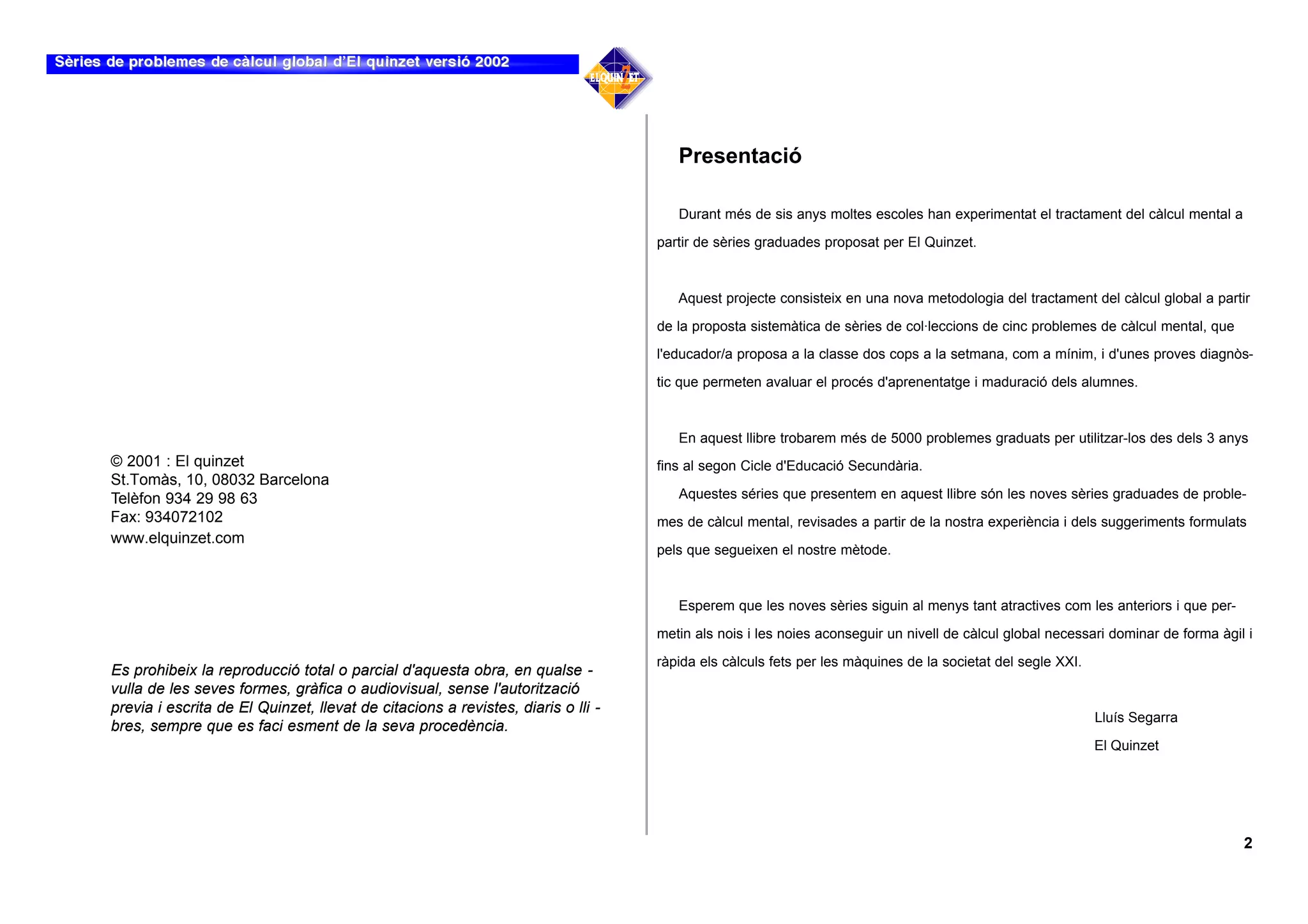 El càlcul proposat en les sèries de problemes graduats de càlcul mental d’El Quinzet