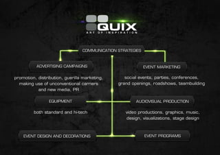 This document summarizes presentation technologies and services offered by QUIX, a company based in Prague that specializes in multimedia entertainment and unique projections. Some of the key technologies and services mentioned include: