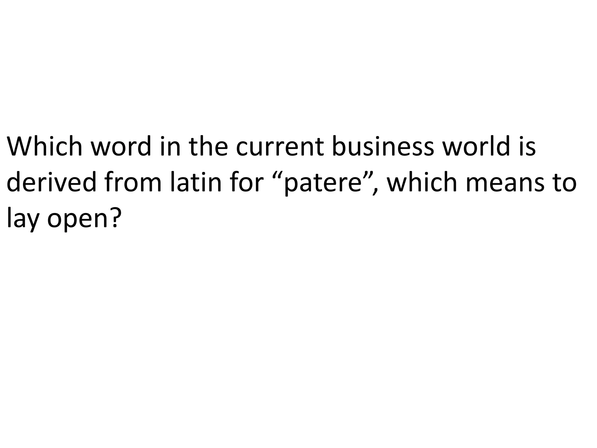 - The word "patent" is derived from the Latin word "patere" meaning "to lay open".