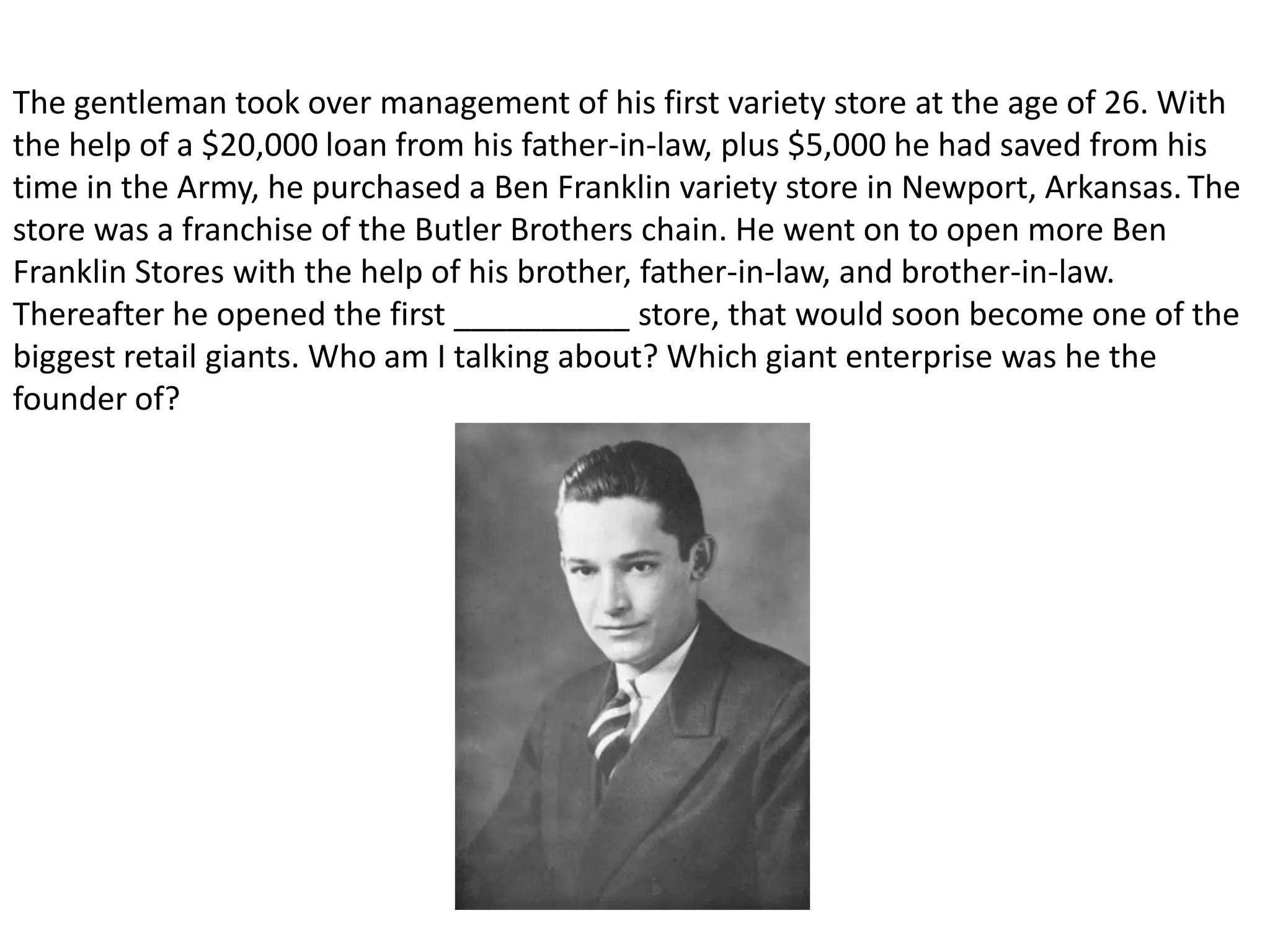 - Sam Walton founded the first Walmart store and went on to create one of the biggest retail giants.
