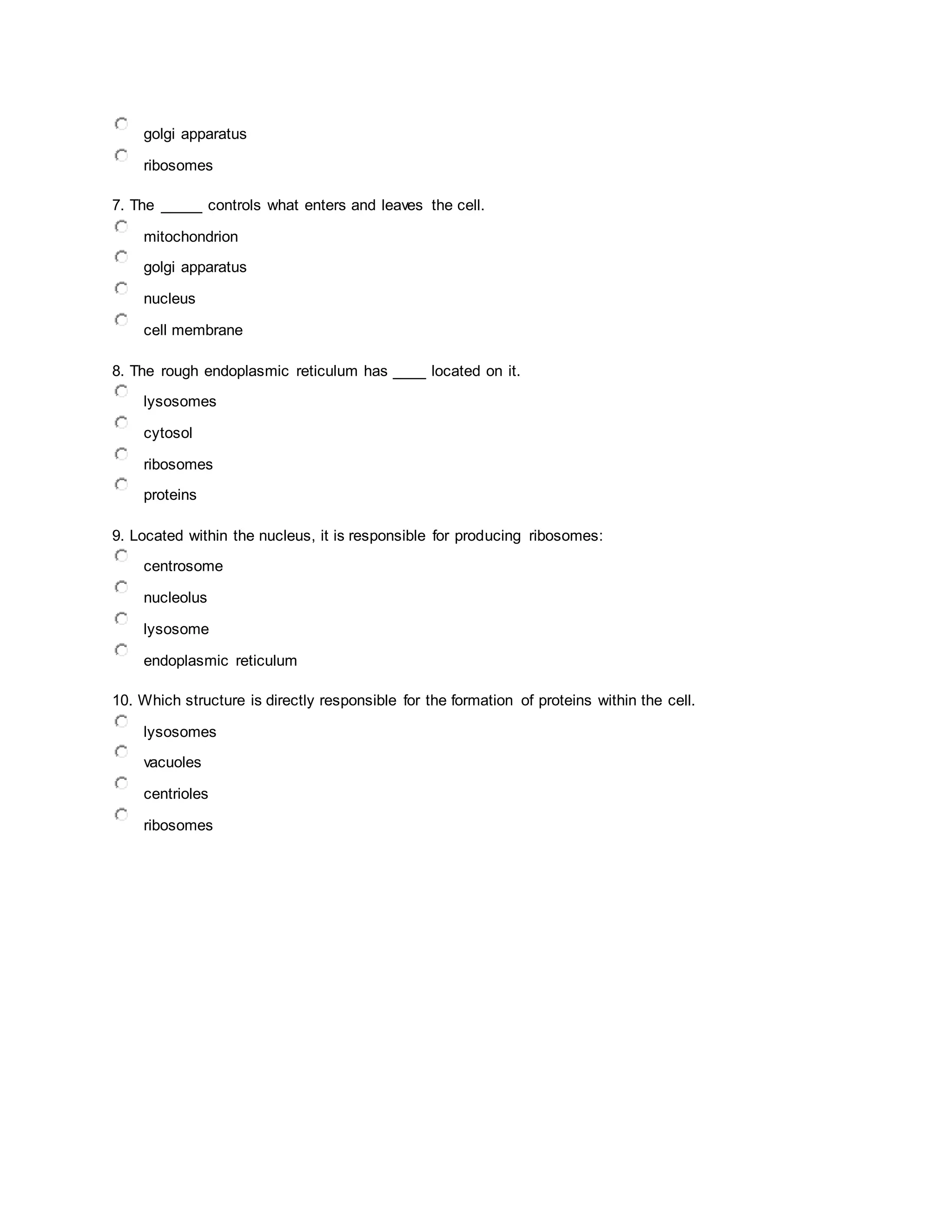 The document describes the functions of various cell organelles. The mitochondrion functions in cellular respiration. The golgi apparatus packages and delivers proteins. Cell organelles are located within the cytoplasm of the cell. The nucleus contains the cell's genetic material.