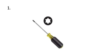 This document provides a quiz about common computer hand tools. It lists 10 tools and their uses: 1) Torx screwdriver, 2) needle-nose plier, 3) tweezers, 4) part retriever, 5) hex driver, 6) compressed air for blowing away dust, 7) parts organizer for holding small parts, 8) Phillips head screwdriver for crosshead screws, 9) flashlight for lighting areas, and 10) flat head screwdriver for slotted screws. The quiz matches each tool with its correct use.