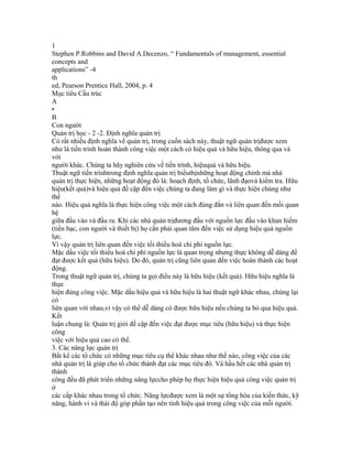 Chương này cung cấp cái nhìn tổng quan về quản trị và vai trò của nhà quản trị trong tổ chức, bao gồm định nghĩa, các chức năng và năng lực cần thiết để thành công. Nhà quản trị cần phát triển các năng lực như truyền thông, hoạch định, lãnh đạo và tự quản trị để đạt được mục tiêu tổ chức hiệu quả. Tài liệu nhấn mạnh rằng quản trị là một quá trình liên tục kết hợp hoạch định, tổ chức, lãnh đạo và kiểm tra để sử dụng hiệu quả các nguồn lực.