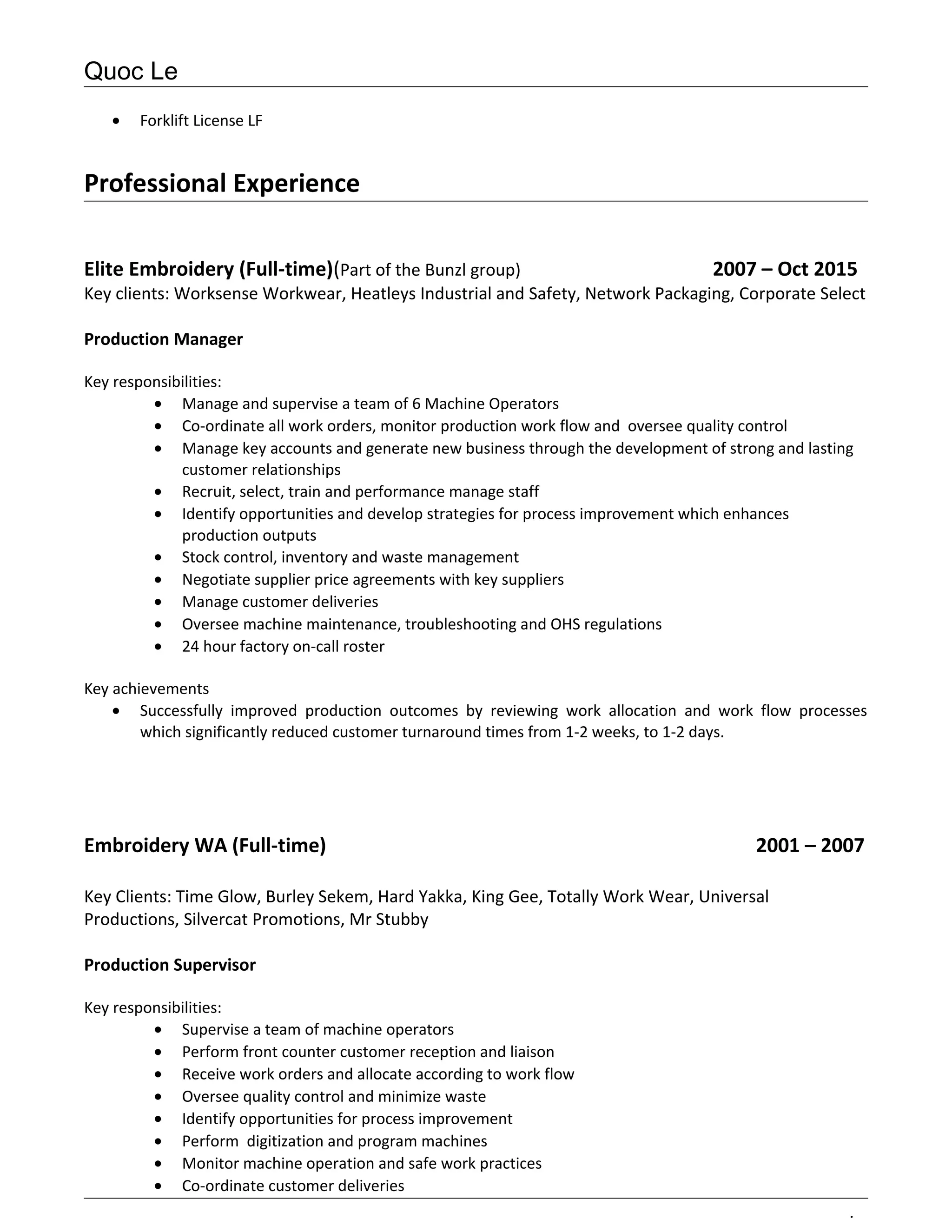Quoc Le has over 15 years of experience in manufacturing and production management. He possesses strong communication, relationship building, and process improvement skills. Currently seeking a new opportunity, he has a proven track record of successfully managing teams, meeting production goals, and developing long-term customer relationships across various roles in the embroidery, food service, and fashion industries.