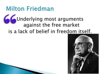 The document discusses the essence of freedom and individual rights, arguing against government intervention in personal choices and the economy. It emphasizes the belief that wealth and progress stem from individual thinking and ambition, rather than collective governance. Additionally, it suggests that removing trade barriers could promote peace and that economic liberty is essential for true freedom.