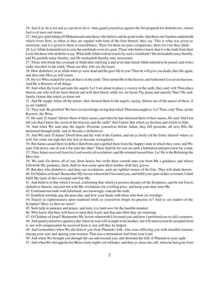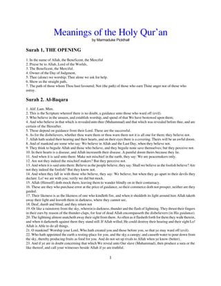 This document provides a summary of the first 61 verses from Surah 1 (The Opening) and Surah 2 (Al-Baqara) of the Holy Quran. The summary includes: