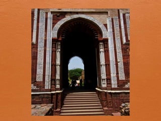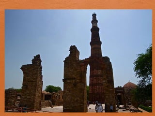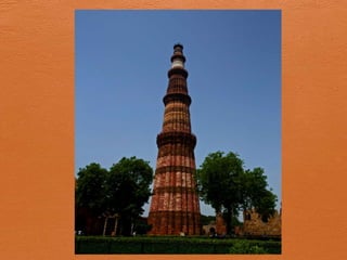 Qutab Minar is a 234-foot tall minaret in Delhi that is the tallest individual tower in the world, construction was started by Prithviraj or his uncle but historians believe it was completed in 1200 AD by Qutubuddin and Iltutmish, and it has beautiful carvings and inscriptions revealing its architectural design and builders.