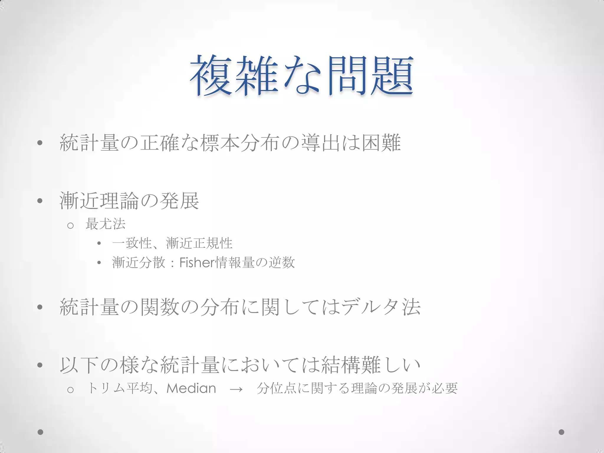 o 統計量が平滑でない値の場合、失敗する場合がある。(ex. Median)