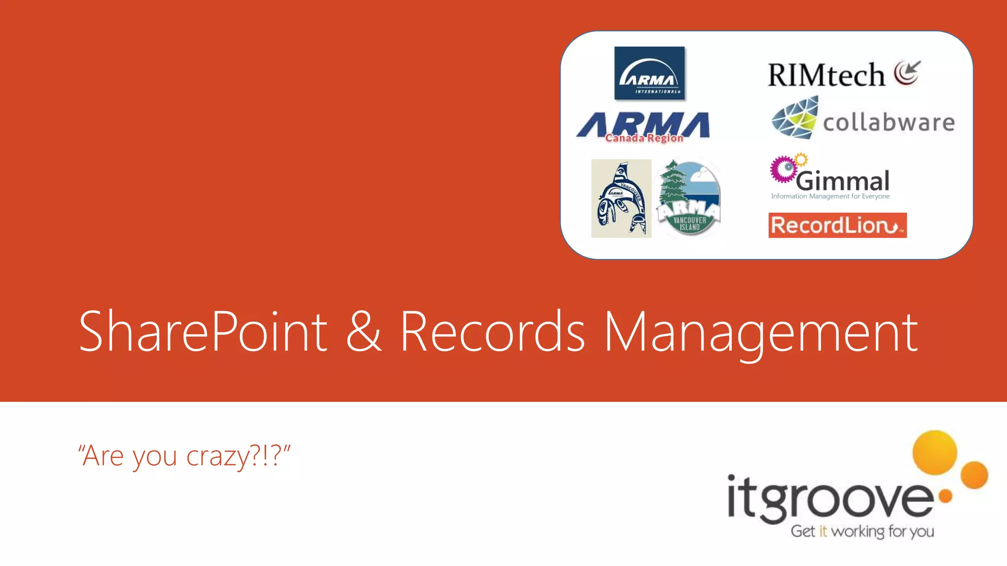 Bruce Smith, an expert in SharePoint and records management, emphasizes the importance of effective records management (RM) in organizations. He discusses challenges like poor RM leading to inefficient decision-making and the need for automated classification methods. The document also outlines strategic implementation advice for electronic document and records management systems (EDRMS) and the significance of integrating RM capabilities into SharePoint to enhance organizational efficiency.