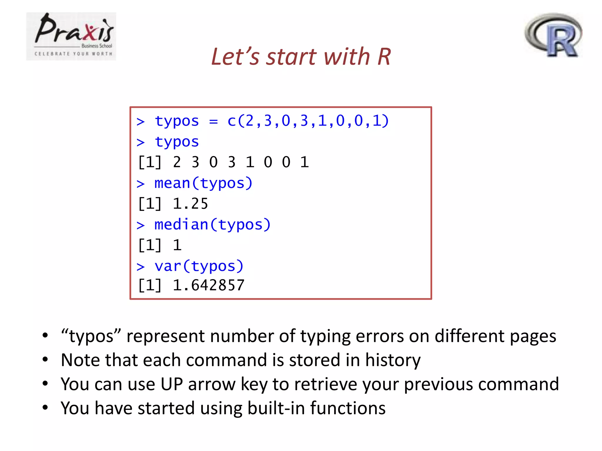- Creating and manipulating numeric vectors using functions like c(), mean(), max(), and indexing