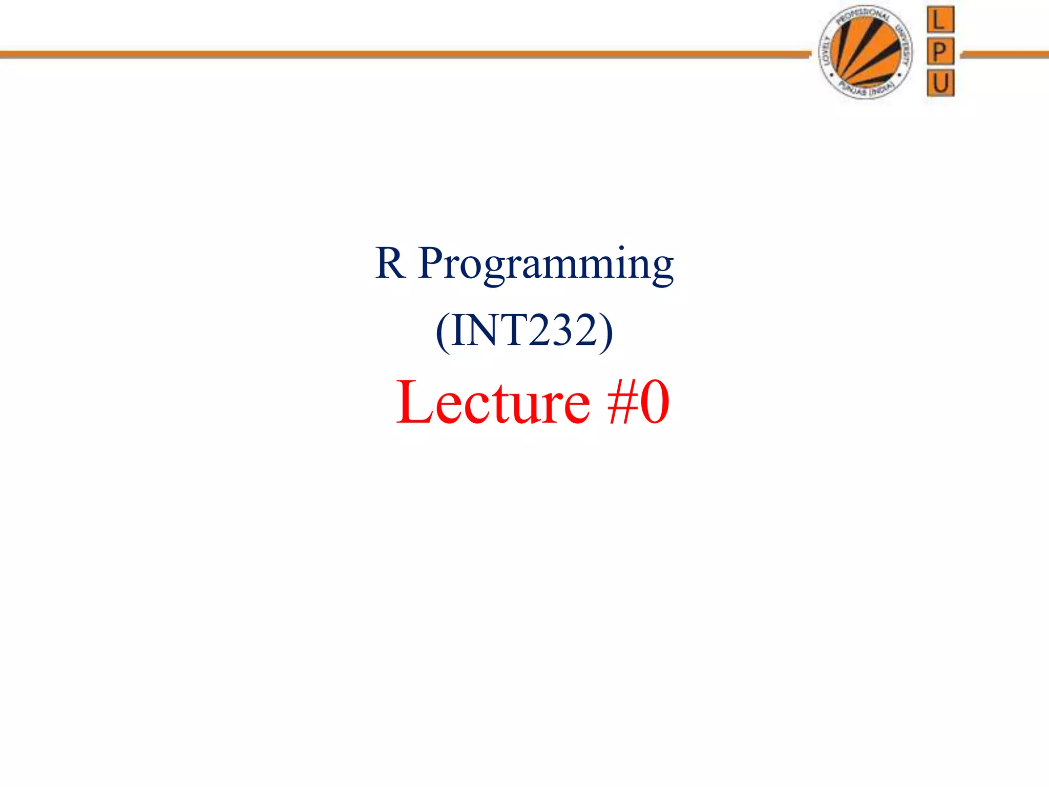 This document provides an overview of an R Programming course. It outlines the course details, including credits, marks breakdown, academic tasks, and learning outcomes. Students will learn essential R skills like data structures, functions, packages, text mining, data visualization, and analyzing real-life business problems. They will install R and RStudio, work with data types, perform data input/output, conditional statements, loops, and create various graphs and dashboards. The goal is for students to use R for statistical analysis, data science, and machine learning applications.