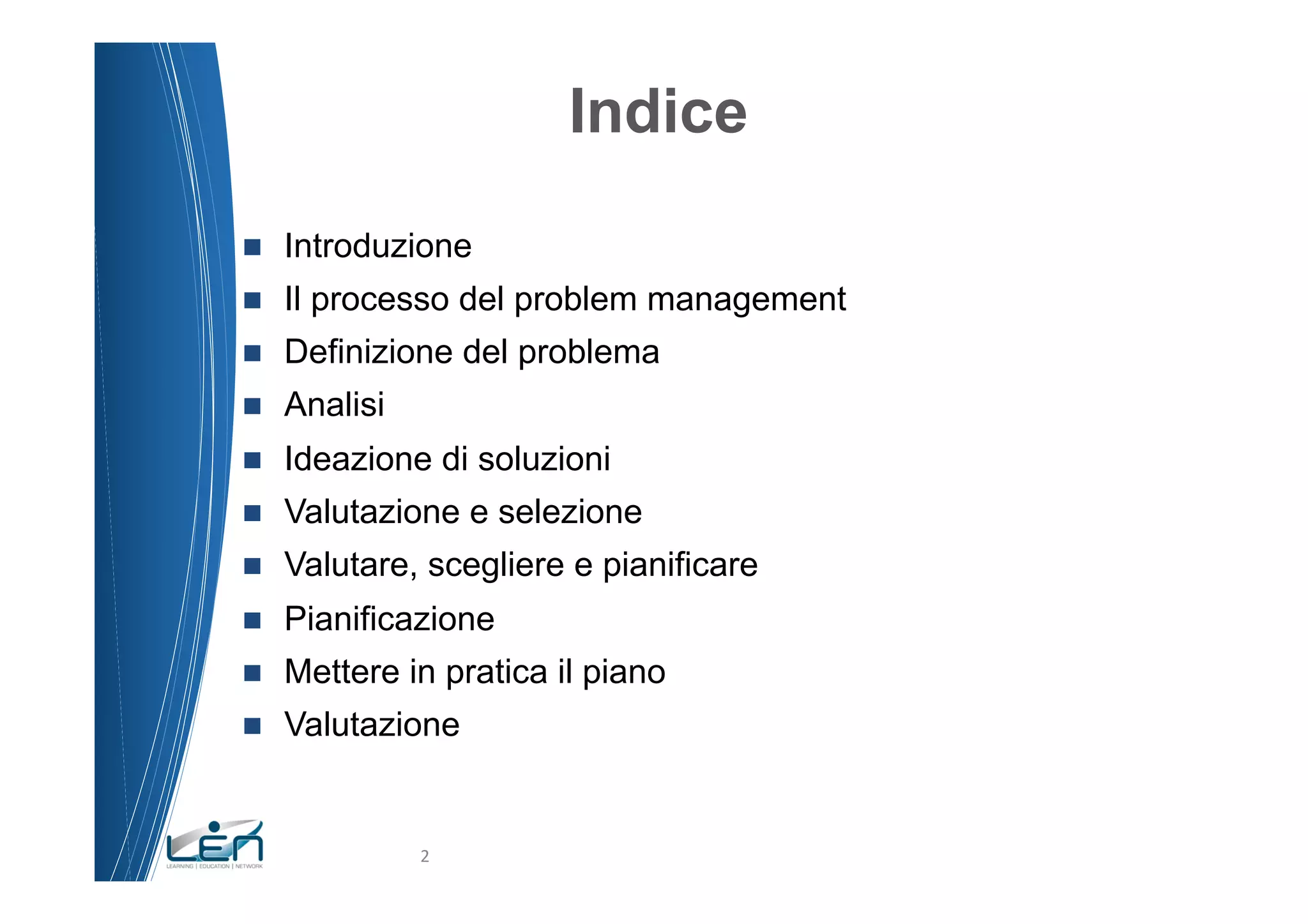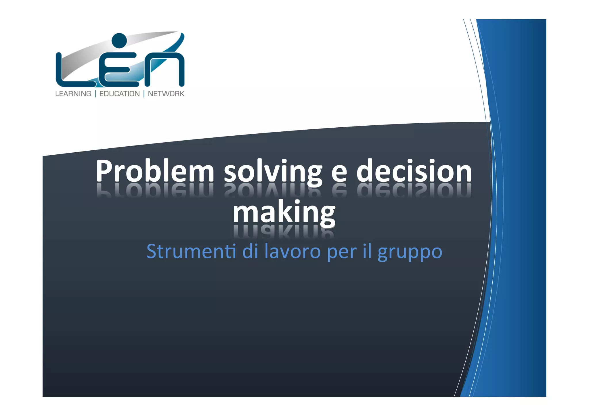 Il documento descrive il processo di problem management e decision making all'interno dei gruppi, evidenziando l'importanza di una corretta definizione del problema, analisi delle cause e ideazione di soluzioni. Attraverso metodi come il brain storming e l'uso dei sei cappelli per pensare, i team possono generare idee e valutare le opzioni disponibili. Infine, il successo dipende dalla pianificazione, implementazione e verifica delle azioni decise.