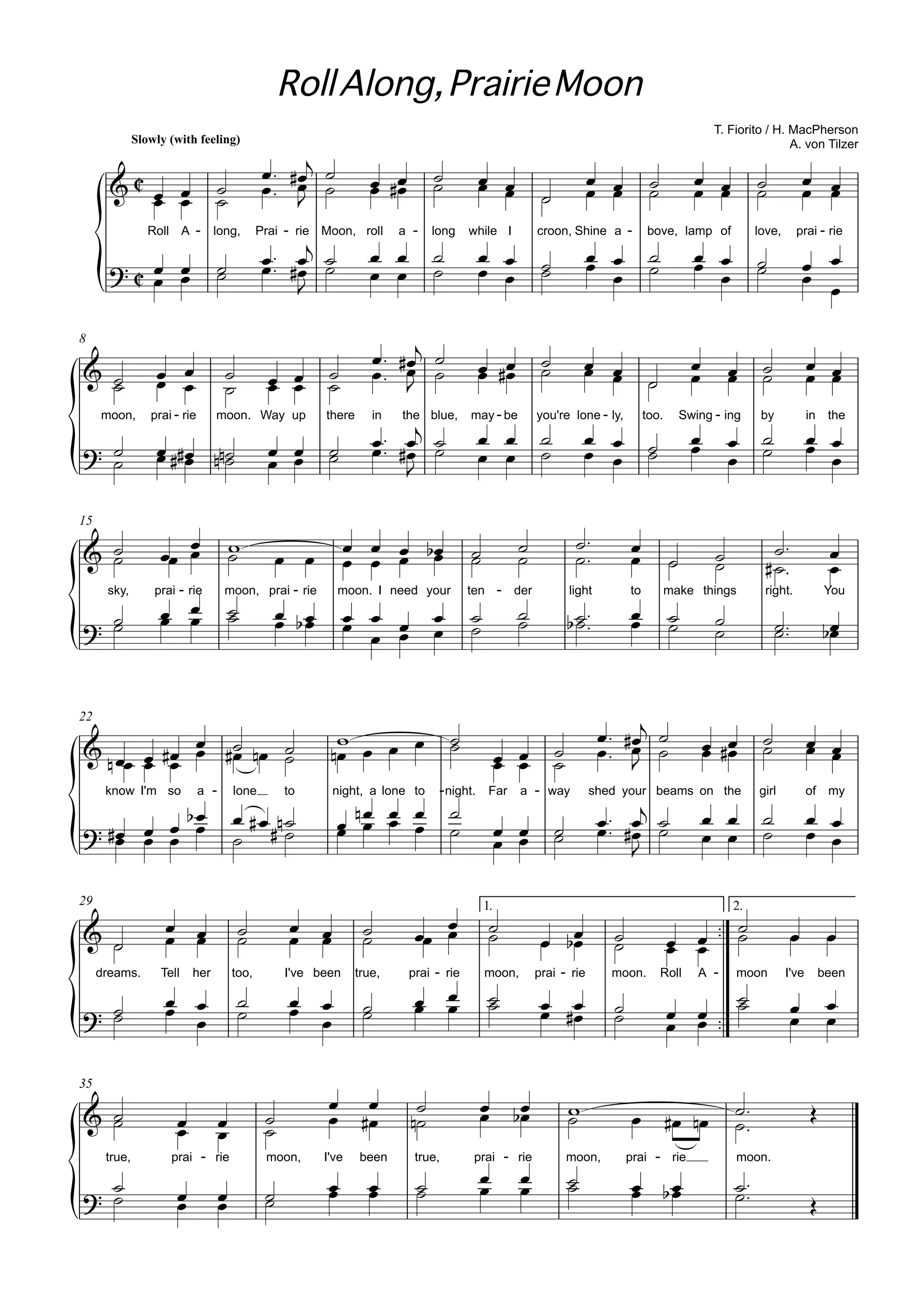 The document is the lyrics to the song "Roll Along, Prairie Moon". The song is about being lonely at night and calling out to the prairie moon to shine its light and keep the singer company. It asks the moon to tell the singer's love that he has been faithful and hopes that its beams will shine on her as well.