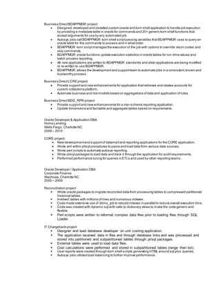 Kent E. Schweitzer has over 20 years of experience as an Oracle developer, database administrator, and team leader/manager. He has extensive experience with Oracle database administration, PL/SQL development, data warehousing, ETL processes, and automation of batch jobs. His background includes developing and supporting large data warehouse and reporting applications, performance tuning, and managing teams. He is currently a Vice President of Enterprise Data and Analytics at Wells Fargo, where he has worked on several projects involving data integration, reporting, and analytics.