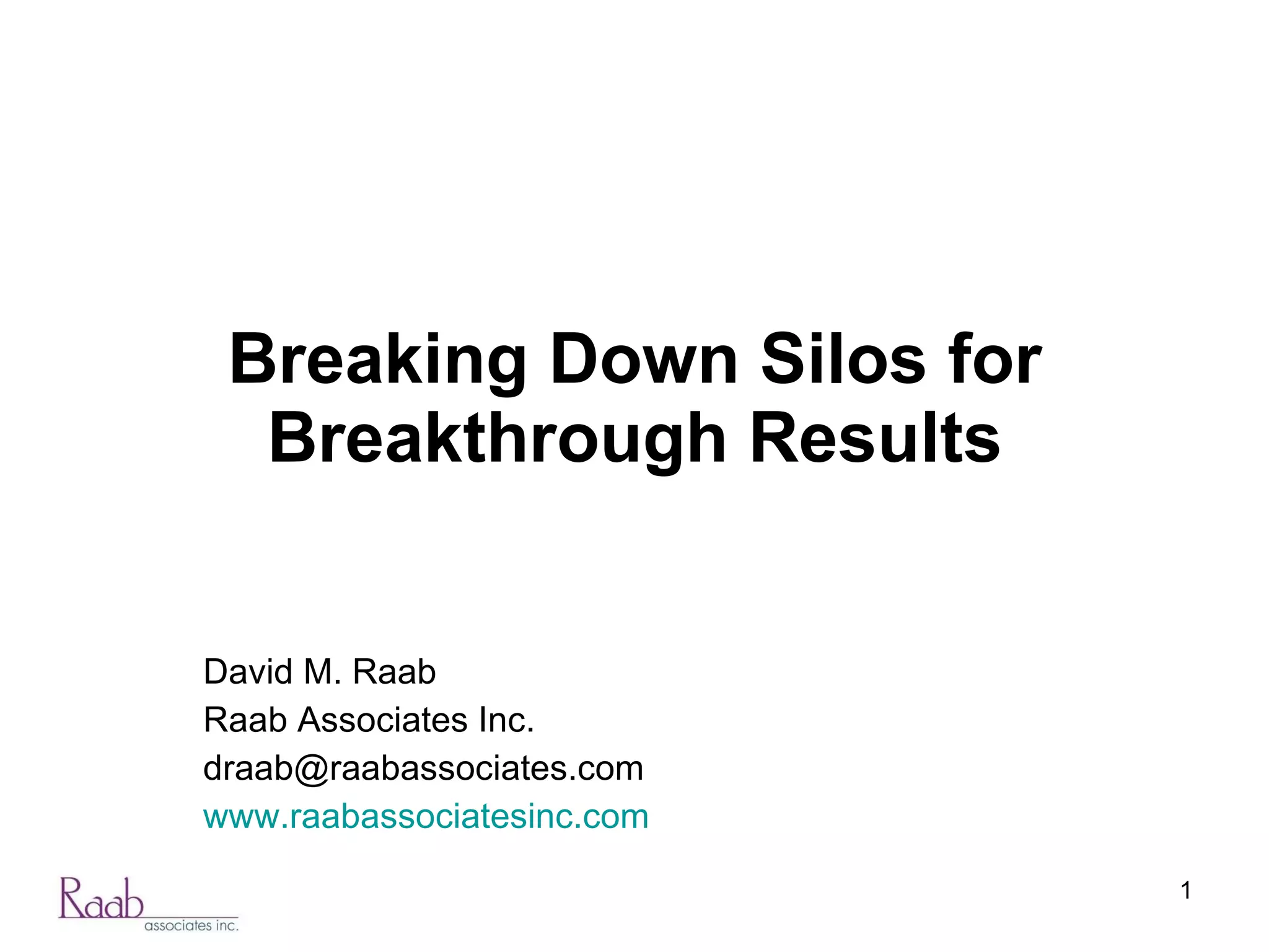 The document discusses strategies for improving marketing effectiveness by breaking down silos and integrating various marketing tactics into a cohesive framework. It emphasizes the importance of a structured testing process, an analytical environment, and the use of technology to optimize customer experience and measure long-term results. Additionally, it highlights the role of social media and the need for careful planning, resource assessment, and a focus on customer relationship management.